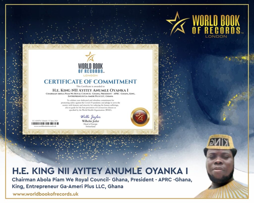 Nii Ayittey Oyanka I, the chief of Oblieman in the Ga West Municipality of the Greater Accra Region has become the first African Royal Traditional Leader to be endorsed into the World Book of records in London.