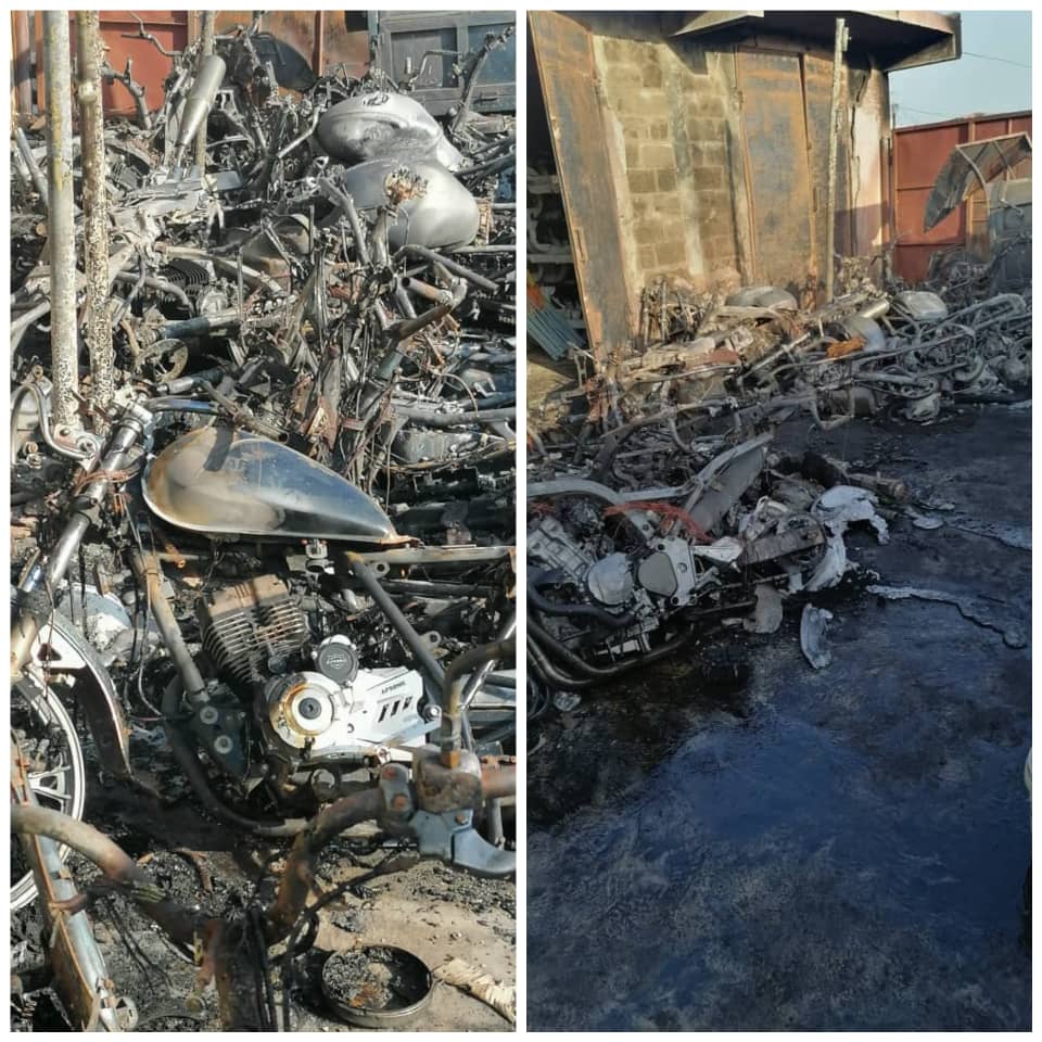 The ravaging fire burnt down unspecified number of motor bikes and other valuable items lost.