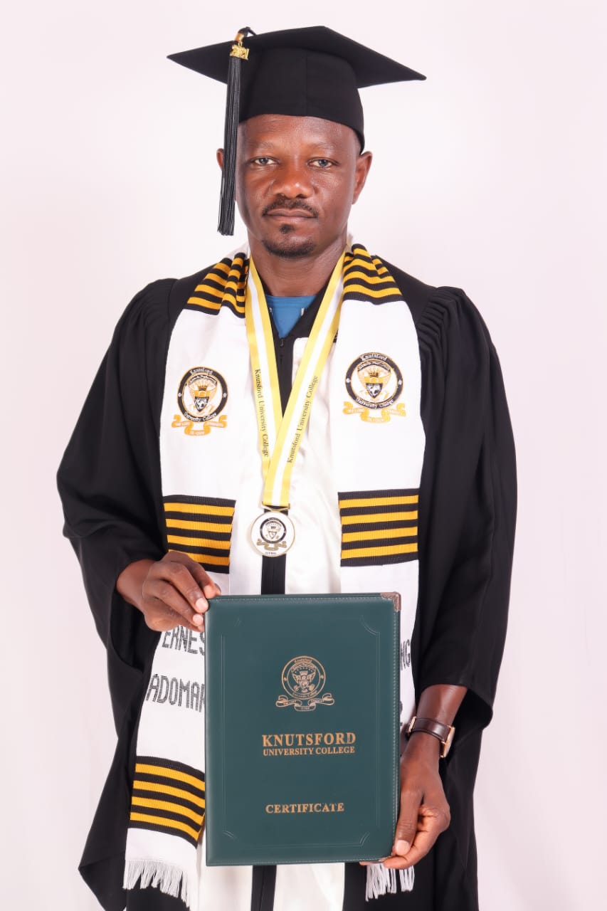The aspiring Parliamentary Candidate (PC) for Okaikoi South constituency of the National Democratic Congress (NDC) in the Greater Accra Region, Ernest Adomako has been awarded Masters degree in Business Administration with Marketing option at KNUTSFORD University College, Accra.